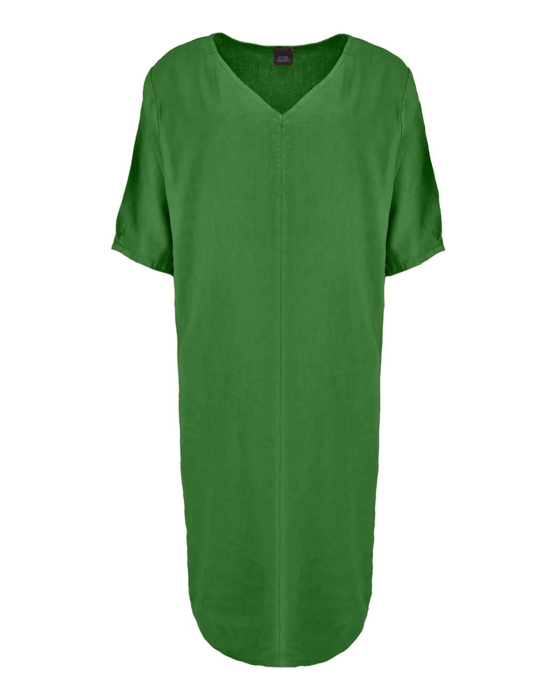 Linde, linnen zomer hit.Ruimvallende jurk met V-hals, korte mouwen en steekzakken in de naad. De jurk valt op de knie. Easy Linnen kwaliteit van FOS biedt een harmonieuze mix van linnen en viscose, waardoor het zowel elegant als zacht aanvoelt. Met 65% linnen en 35% viscose creëert deze stof een subtiel slub-effect dat zorgt voor extra textuur en karakter. Dankzij de natuurlijke soepelheid, ademend vermogen en frisse uitstraling is deze stof ideaal voor onze zomerjurkjes!